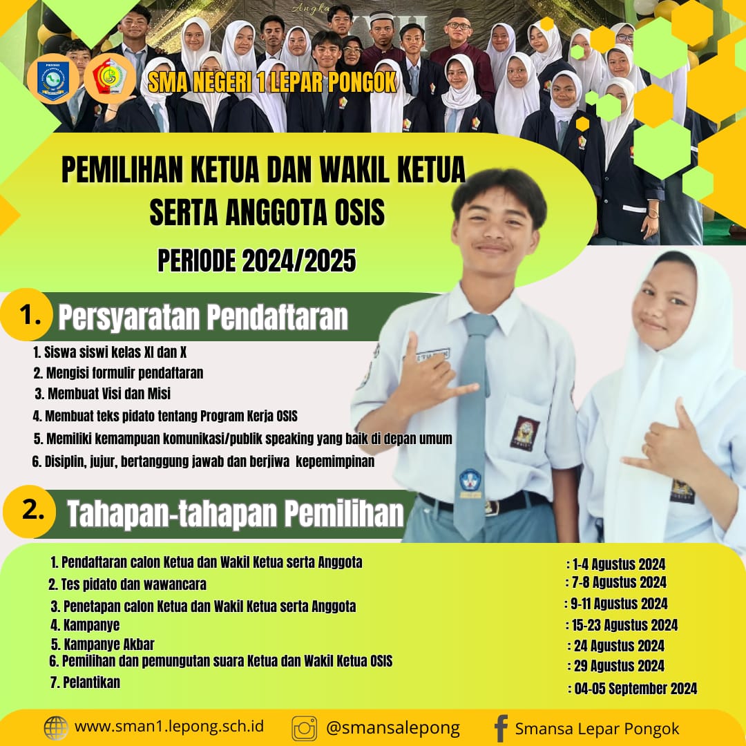 Kuy, teman teman, sahabat di SMA Lepar. Kita ikut berparsipasi pemilihan Ketua OSIS tahun 2024